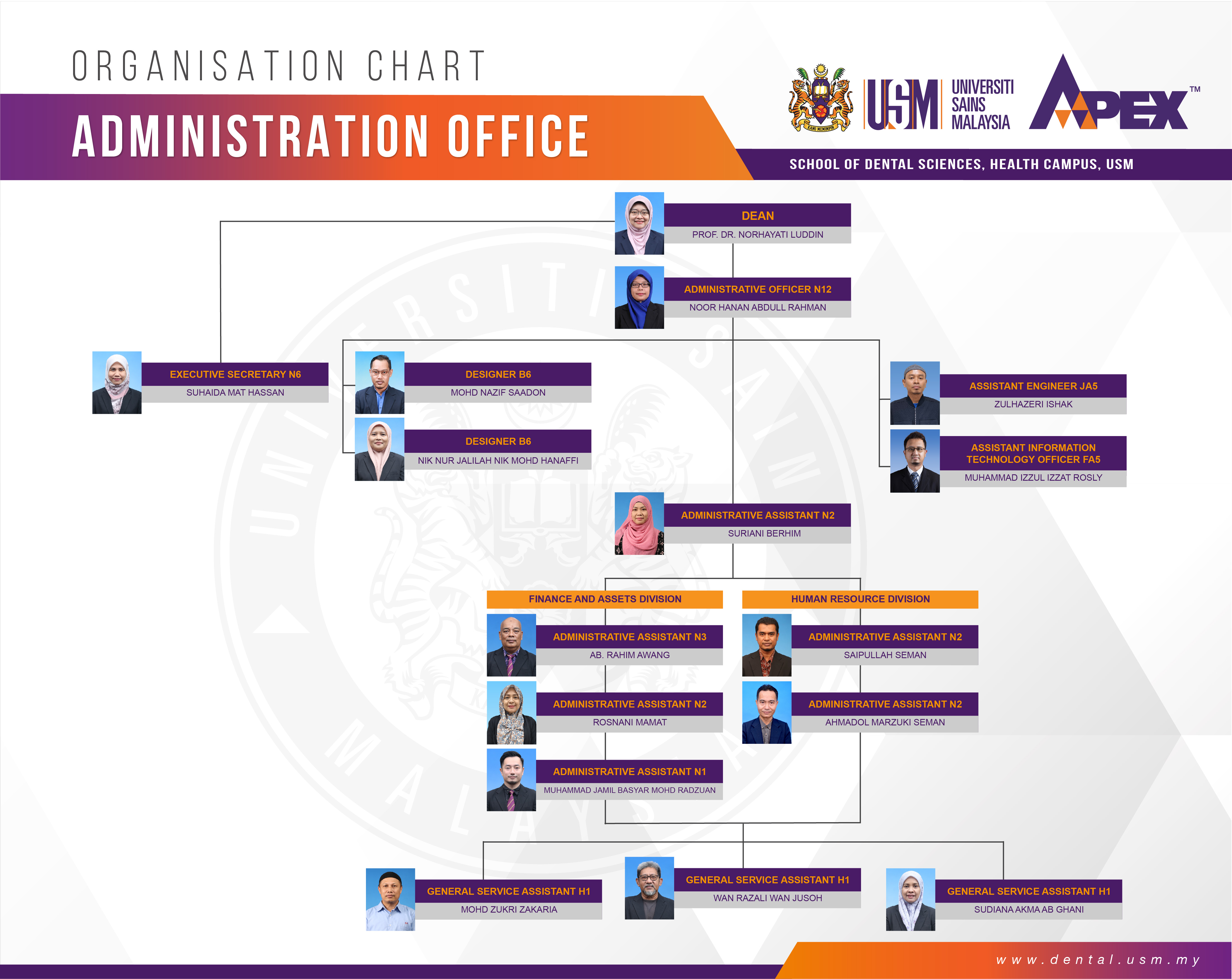 Administrative OfficerMrs. Noor Hanan Abdull RahmanExt: 5511noorhanan@usm.my